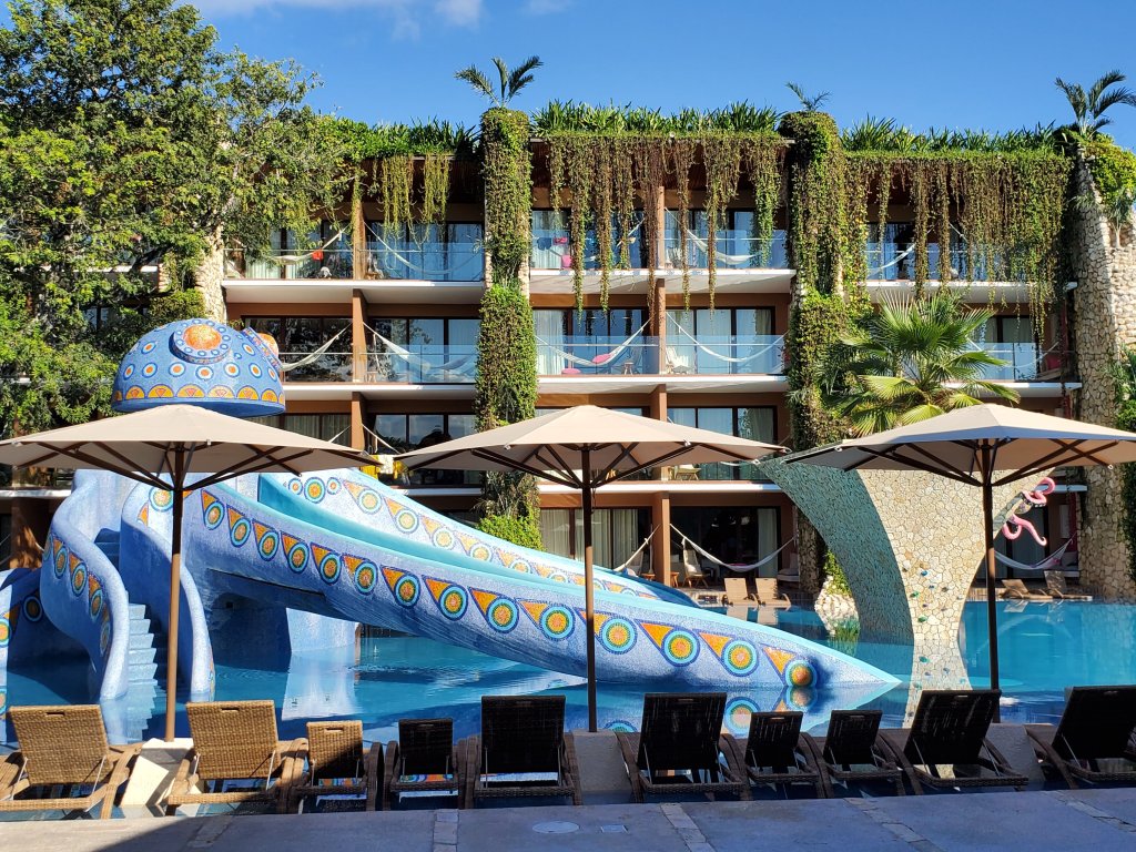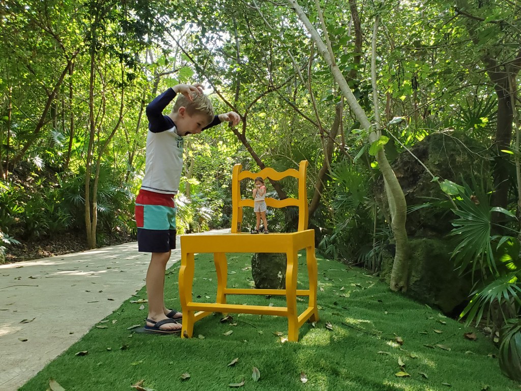 This park is south of the hotel toward Tulum. The main draw here is fabulous snorkeling. There’s a huge water slide tower (expect a line), some cliff jumping spots, tubing, a zip line into the ocean, floating obstacle courses, and a neat play structure for the kids. The beach is lined with hammocks and loungers, so we never had trouble finding a spot to relax. They do ask visitors to use a mineral SPF here to avoid hurting the reef.