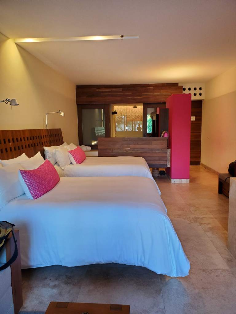 The real star of the show are the amazingly manicured grounds. Every detail here is thoughtfully taken care of so that you’re surrounded by beauty no matter where you roam. The lobby is open-air with plants hanging from the ceiling. The view of the pools lead right out to the ocean. There are little saltwater inlets and rivers that flow throughout the property so that you always feel like your right on the beach, but still maintains a feeling of privacy somehow. Additionally, you’re always steps away from a bar. Did we indulge in a lot of tequila? Yes. But I think the number of smoothies consumed by our kids should have bankrupted the place. No matter where you roam, there is something to delight the oldest and youngest visitors alike.