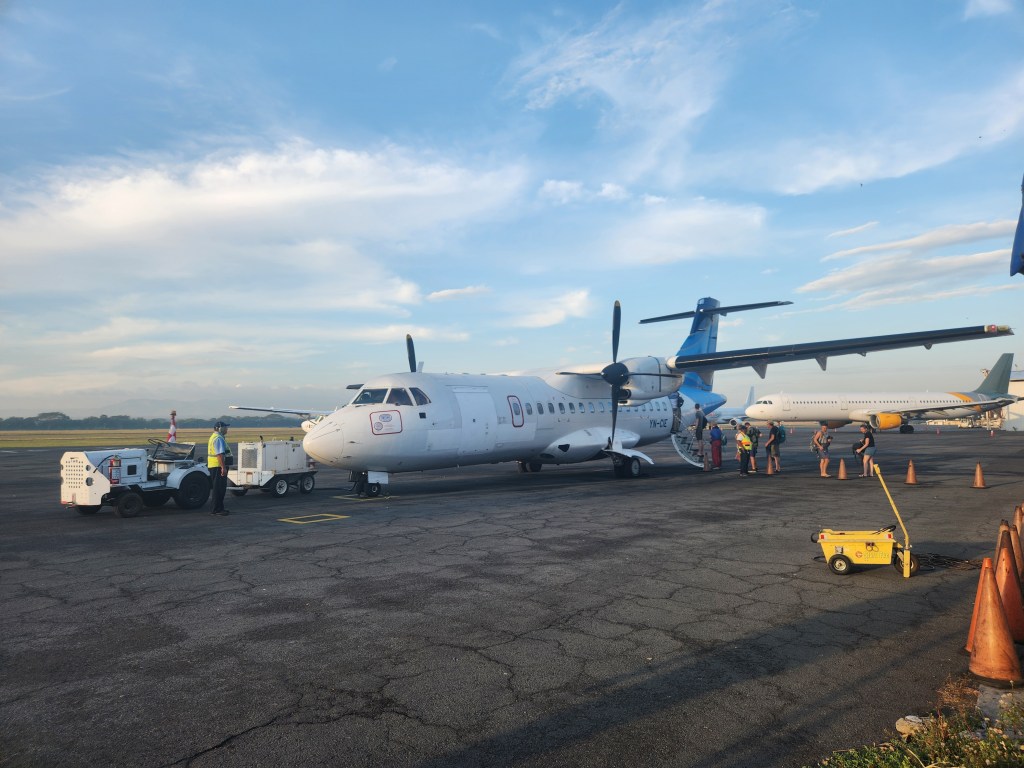 The smaller plane that takes you to Bluefields can be a little unpredictable. They also fly to the Corn Islands, so depending on how many people are there that day, they make last minute decisions about the size of plane needed and which routes they’re flying first. Just go with the flow. On the way to Bluefields, we were on a small but “normal” plane. On the way toward home, however, we were on a tiny plane. It made my heights-aware husband a little nervous, but it was totally fine.