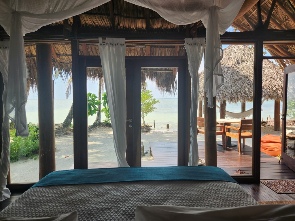 Calala is located off the coast of Nicaragua in Central America. It’s a bit of an adventure to get there, but worth the effort for a bucket list trip. You have to fly into Managua, take a smaller plane to Bluefields on the coast, and then take a two hour boat ride through mangroves and then out into the ocean. But part of the luxury of Calala is that they are with you nearly every step of the way. A staff member meets you at the airport and basically holds your hand. You get to skip the line at the airport and are ushered right into the waiting room to hop on your 40-minute flight to Bluefields. Once you land, staff members grab your luggage for you and escort you to the boat. You all ride together in Calala’s private boat right up to the hotel’s dock. All the while, the hotel’s manager is texting you on WhatsApp to make sure you’re comfortable. I was really impressed with the logistics! AND they bring you a snack, water bottle, and coffee.
