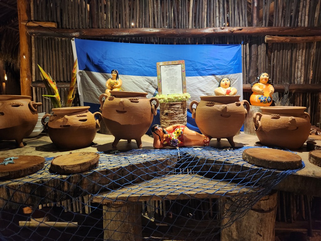 One of my favorites was a local Nicaraguan BBQ night. We were entertained by musicians singing songs in English, Creole, and Spanish. Next, there was a really fun hermit crab race…yes, hermit crabs! There are huge ones all over the island that you find wandering along in the evening. Our hosts rubber-banded numbers to them to correlate with your room. The fastest hermit crab to exit the circle in the sand was the winner! Everyone was quite invested in their crab. Afterward, we all sat down at tables on the beach and enjoyed “rundown” soup, various salads, sides and desserts.