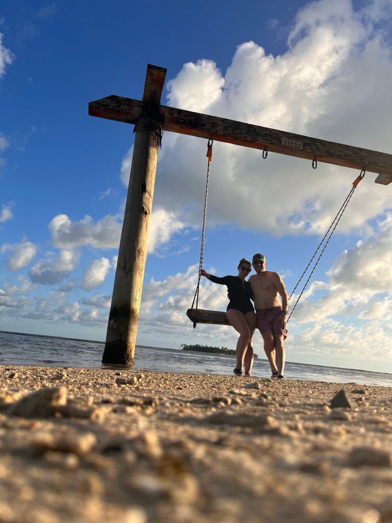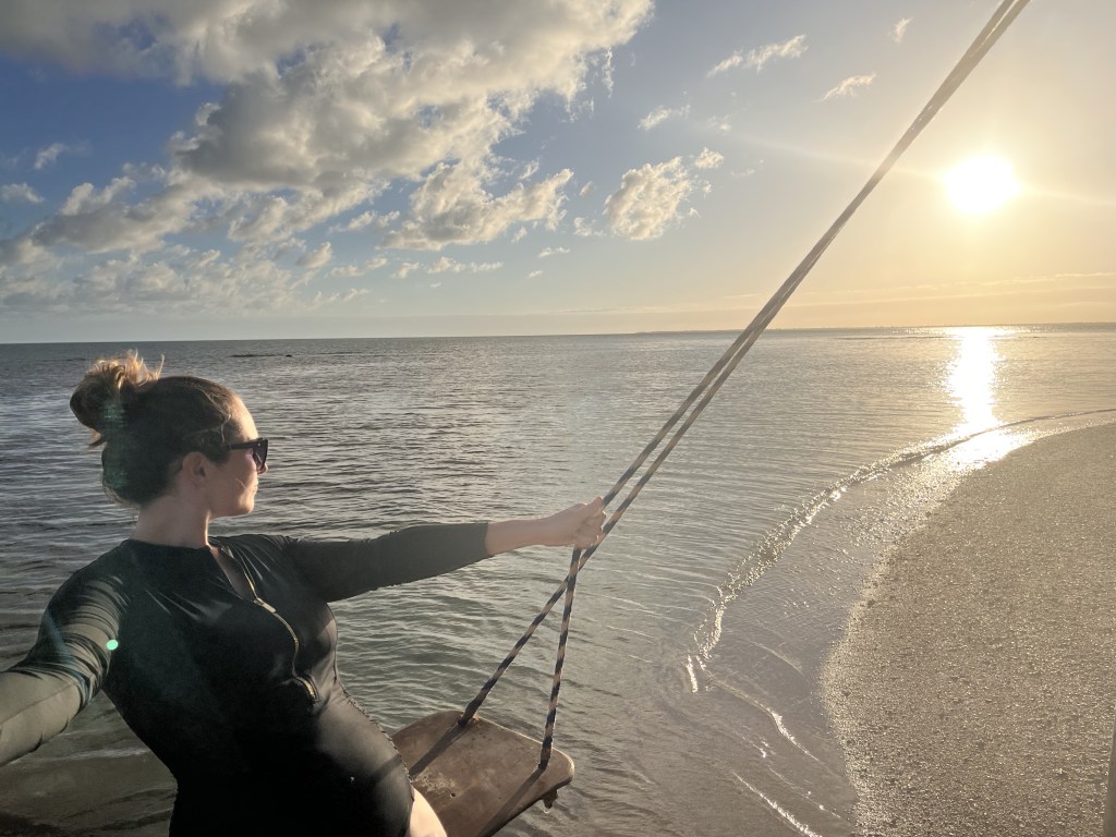 The grounds are immaculate. One side of the island has a lovely beach, good snorkeling, a pool, lounge chairs, a swim-up bar, an area for lunch, and is equipped with books, yoga mats, kayaks, and paddle boards. There’s also a bathroom, so there’s no need to go far. The opposite side of the island features another beach with an idyllic swing in the ocean, a larger spot for dinners, a bar, a pizza oven, a bathroom, and the main kitchen. There’s also a little spa if you’re interested in a massage. All of the walkways are sand and are meticulously raked so it feels like you’re the only person on the island leaving footprints in the sand. You can walk around the entirety of the island in just a few minutes.