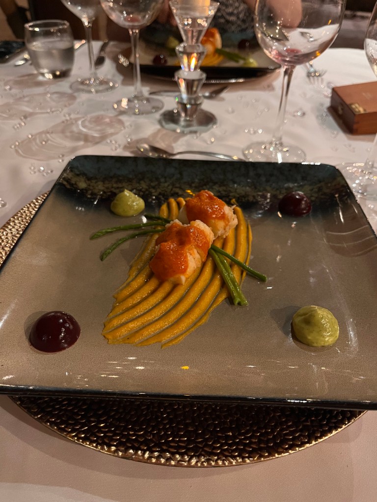 The lunch options are just as varied. They have a wood fired pizza oven, so there are several types of pizza available. They keep the oven going until around 4:30, so you can order a pizza pretty much any time of day. There are also a plethora of starters including really delicious lobster skewers. The salads are great too! You can add any protein to your salad as well – chicken, shrimp, steak, lobster. And of course, there are main courses galore so you never get bored. Every day features a new bite of dessert too, if you’re so inclined. The key lime cheesecake was super decadent.