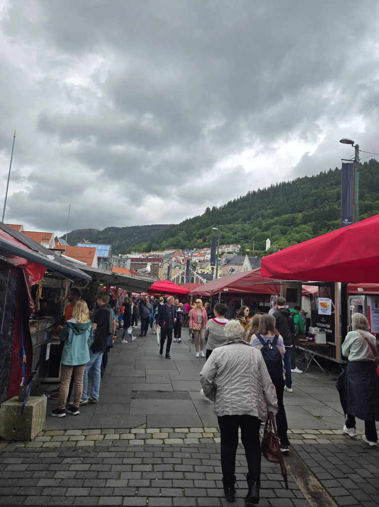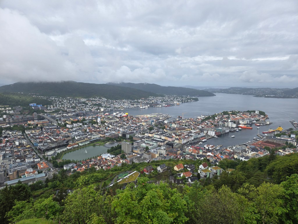 I really enjoyed Bergen’s vibe and the access to fresh fish on all the menus. It’s a bit sprawling, very walkable, family-friendly, and super cute. Bergen is a big destination for cruise ships, so be prepared for some crowds in the main tourist areas. It’s also known for raining 240 days per year! We visited in June/July and did experience a little rain every day, but it didn’t ruin any of our plans – just be prepared! A good rain shell, quick-dry travel pants, and waterproof hiking shoes (I love the Columbia brand) will help you stay comfortable when walking about town.
