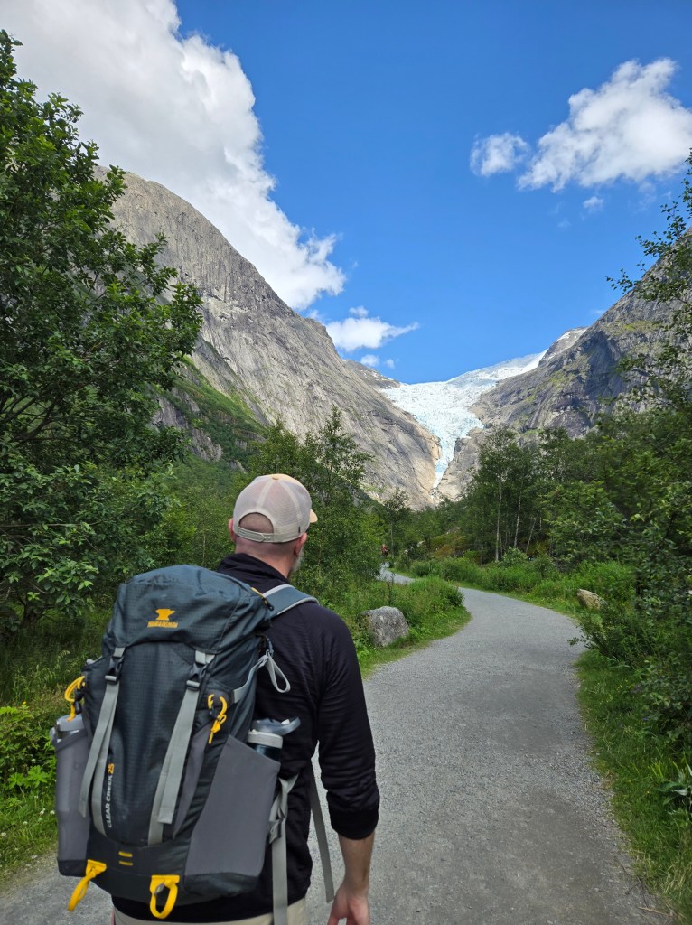 The other stop was one of our favorite hikes of the trip: Briksdal Glacier. This is a gorgeously maintained trail and a pretty easy out-and-back hike for all ages. It’s about 3 miles, so I would budget 4 hours for the whole experience. There are rushing waterfalls, forests, “troll potholes”, and the glacier itself to explore. If you’re absolutely tired of hikes, you can also take the Troll Shuttle to the glacier which is basically a golf cart. But do the hike ’cause it’s so beautiful!!