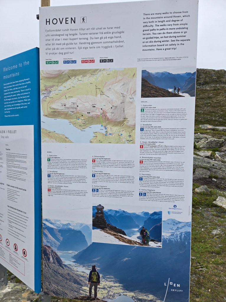- Stegastein – Full disclosure, you can drive to the Stegastein Viewpoint and save yourself the hike. Narrow, steep trail that takes about 2 hours to get to the top. We cheated and drove. There’s a cool lookout here as well as ample free parking and bathrooms.